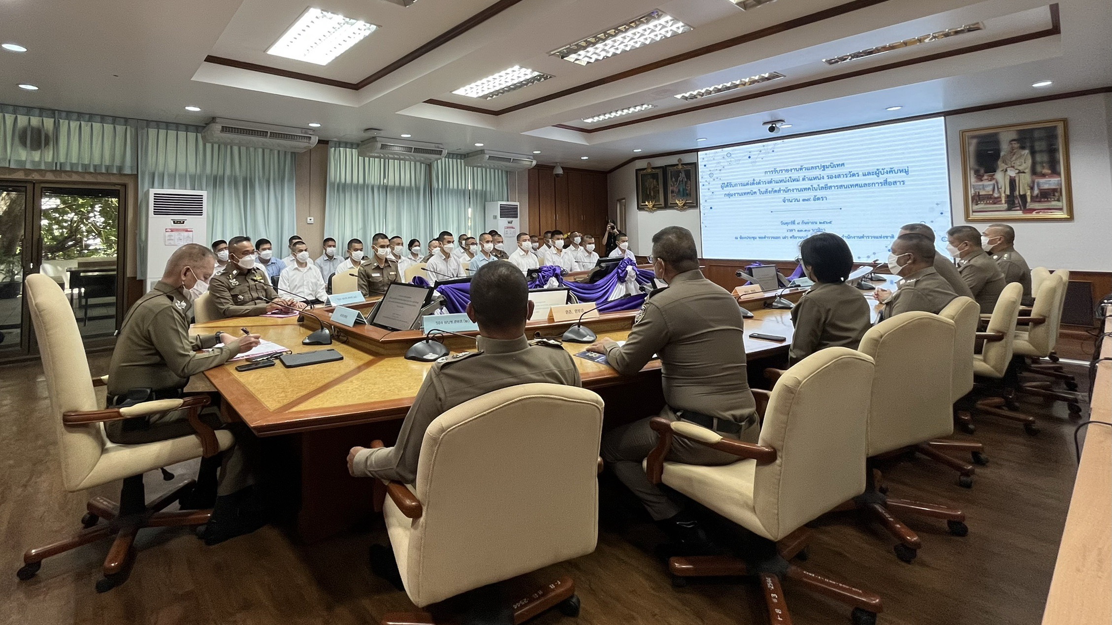 วันนี้ (9 ก.ย.65) เวลา 13.30น. พล.ต.ท.ศิริพงษ์ ติมุลา ผบช.สทส., พล.ต.ต.อาคม ไตรพยัคฆ์ รอง ผบช.สทส., พล.ต.ต.พงษ์สยาม มีขันทอง รอง ผบช.สทส. พร้อมด้วยผู้แทน บก. ในสังกัด รับรายงานตัวและปฐมนิเทศ ผู้ได้รับการแต่งตั้งดำรงตำแหน่งใหม่ ตำแหน่งรองสารวัตร และผู้บังคับหมู่ กลุ่มงานเทคนิค ในสังกัด สทส. จำนวน 39 อัตรา ณ ห้องประชุม พล.ต.อ.เผ่า ศรียานนท์ ชั้น 2 อาคาร 8 ตร.